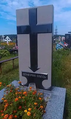 Over the grave of Olesya Semerni eternal memory is a cross, made by his own sketches.