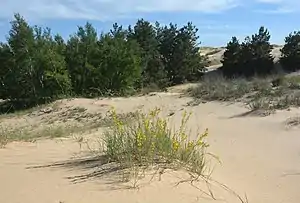 Oleshky Sands National Nature Park (Ukrainian: Олешківські піски національний природний парк) is a national park of Ukraine, located south of the lower Dnieper River about 25 km east of the regional city of Kherson, and 70 km northwest of the Crimean Peninsula. The park features expanses of low-fertility soil and sand, and a variety of unusual microhabitats. The area is not a true desert, but rather semi-arid. As of 2019, visits by unaccompanied members of the public were strictly prohibited, with warnings that the area was next to a military training ground. The park is located in Kakhovka Raion of Kherson Oblast.[1]