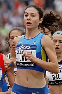 Olha Oleksandrivna Lyakhova (Ukrainian: Ольга Олександрівна Ляхова) (born 18 March 1992) is a Ukrainian middle-distance runner.[2] She won bronze medals at the 2018 European Championships and 2019 European Indoor Championships.
