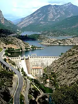 Oliana is a municipality in the comarca of the Alt Urgell in Catalonia, Spain. It is situated in the Segre valley immediately below the Oliana reservoir. There is a factory of domestic electrical appliances in the town, and the presence of non-farming employment has meant that Oliana has escaped the depopulation experienced by most municipalities in north-west Catalonia. It is currently the second-largest town (by population) in the Alt Urgell, behind the comarcal capital La Seu d'Urgell. The town is served by the C-14 road between Ponts and La Seu d'Urgell.
