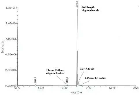 • To obtain more detailed information on the impurity profile of oligonucleotides, liquid chromatography-mass spectrometry (LC-MS or HPLC-MS)[113] or capillary electrophoresis mass spectrometry (CEMS)[114] are used.