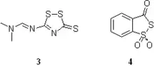 • 3-(Dimethylaminomethylidene)amino-3H-1,2,4-dithiazole-3-thione, DDTT (3) provides rapid kinetics of sulfurization and high stability in solution.[73][93][94] The reagent is available from several sources.[95][96]