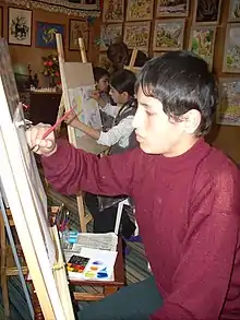 By learning the specific of miniature painting and restoring copies of miniatures of Middle Age Persian artist Kamaleddin Behzad, Kamalov creates the series of his own works of modern miniature. He elaborated his own technology and paints miniatures on paper, canvas, wood and metal. In 2009 Olim Kamalov found Tajik school of miniature painting. Since then, his part in reviving miniature art in Tajikistan has been vital.[3]