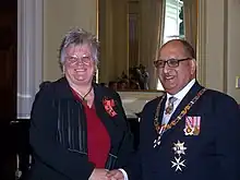 ![]() Webb receiving the insignia of an Officer of the New Zealand Order of Merit in 2008 | |