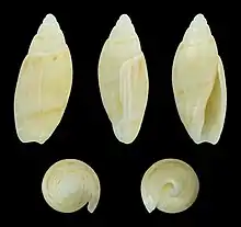 Olivella lactea is a species of small sea snail, marine gastropod mollusk in the subfamily Olivellinae, in the family Olividae, the olives. Species in the genus Olivella are commonly called dwarf olives.[2]