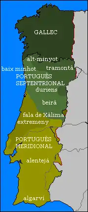 Oliventine Portuguese[1] (also known as Olivença Portuguese)[2] is the dialectal variety of the Portuguese language natively spoken in the municipalities of Olivença and Táliga, in Extremadura (Spain). Currently, the Portuguese of Olivença and Táliga is not recognized by Spain, which has administered this territory since the War of the Oranges in 1801. Portugal, however, does not recognize Spanish sovereignty over the region and claims it as its own.[3][4]