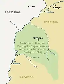 During the Reconquista, the lands that today form the territories of Olivença and Táliga were ceded to Portugal by the Treaty of Alcañices, in 1297, along with many other localities. King Denis had taken advantage of the weak Castilian political position to annex and retake several territories.[10]