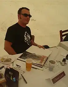 ![]() Olivier Ledroit at the Château de Comper, dedicating his comic books | |