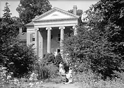 Olney, originally patented as Prospect, is a historic home and farm complex located at Joppa, Harford County, Maryland. It is a 264-acre (1.07 km2) working pony farm with a collection of 15 structures ranging in style, use, and elegance. The main building on the property is a 2+1⁄2-story brick house dating to 1810, generally called "the mansion." The house was evolved into a museum of Maryland architecture, with salvaged features from demolished buildings in Baltimore and Philadelphia. These include paneling from the Isaac Van Bibber house in Fells Point, Baltimore dating to 1815; the marble Ionic portico from William Small's Baltimore Athenaeum from 1830; and a marble bas-relief plaque designed by Pierre L'Enfant for Robert Morris's great 1795 house in Philadelphia. Also on the property is an early-18th-century, 2+1⁄2-story stone dwelling and a variety of still-functioning farm structures that in themselves range in style from simple stone stables and frame hay barns to an unusual two-story brick blacksmith's shop. In addition, the 1914 Union Chapel School, was moved onto the property in 1980 and re-outfitted as St. Alban's Anglican Church. The property was developed by J. Alexis Shriver (1872–1951), a man prominent in local and state historical and agricultural matters who lived at Olney from 1890 until his death.[2]
