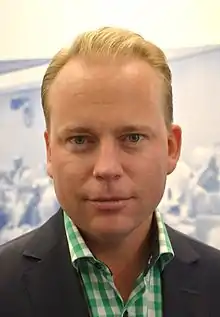 Olof Lavesson, born in 1976, is a Swedish politician of the Moderate Party. He was member of the Riksdag from 2006 to 2018. He is openly gay.[1]