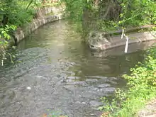 After crossing San Lorenzo (fraction of Parabiago) and Nerviano, the Olona river receives its two main tributaries, the Bozzente and the Lura, at Rho.[24] In Rho there is also the "deviator of the Olona", completed in the eighties of the twentieth century, which flows into Lambro Meridionale.[8] This work has always been a source of controversy: on the one hand it has not avoided all the floods as it was designed and, on the other hand, it carries polluted water towards the Ticino.[25] In November 2002, in particular climatic conditions,[26] the Olona, the Seveso, the spillway and the Ticino overflowed.