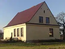 The public Primary School of Olszowa was built in 1927–28. The building design was the one duplicated in several villages of middle-war Poland. It contained three classrooms at ground floor, school office and two apartments of a schoolmaster and teacher upstairs. Initially it had three classes only. Among first teachers were Seredyńska and Woźniak (schoolmaster). Wójcik, Nowak, and Leon Sowa were the teachers of that period.[15] Other teachers were Ireneusz Gałecki and A. Gralak. L. Sowa was the last schoolmaster before World War II. He and his wife Kazimiera were teachers also under German occupation until early 1942. They both were active in underground structures of the Home Army and were arrested by the German occupants. Leon Sowa was imprisoned (number 44667) and was murdered in Auschwitz on 13 August 1942.[17] Kazimiera Sowa was held in Ravensbrück. She was brought into Ravensbrück concentration camp on 21 June 1942.[18] She survived the war and taught shortly after the war in the same school. After the Sowas' arrest the teacher in Olszowa school was Helena Hekowa. The school returned to service after the war. In 1973 it was passed to gmina Ujazd. Halina Kula was the last schoolmaster. The school was terminated in the 1980s. The building was sold by gmina Ujazd to a private owner.