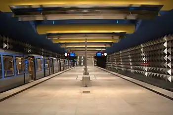 Olympia-Einkaufszentrum is a U-Bahn station in Munich, serving the Olympia-Einkaufszentrum (OEZ), a shopping mall in the Olympiapark area of Moosach. It is the terminus of the U1 line of the Munich U-Bahn system. The U3 extension to Olympia-Einkaufszentrum opened on 28 October 2007.[2]