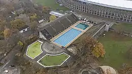 Olympiapark Schwimmstadion Berlin (German: Berlin Olympic Swim Stadium) is an aquatics venue located at Olympiapark Berlin in Berlin, Germany constructed for the 1936 Summer Olympics. Located north of the Olympic Stadium it hosted the diving, swimming, water polo, and the swimming part of the modern pentathlon events. A total of 140,231 attended during all competitions. It hosted the World Aquatics Championships in 1978 as well and was a venue of European Maccabi Games 2015.