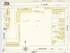 Olympic Park (I) was home to the Buffalo Bisons baseball club of the National League for two seasons, 1884 and 1885.[2] It was located on the block bounded by Richmond Avenue (west); Summer Street (south); and Norwood Avenue (east). After the National League dropped the Bisons franchise, professional baseball continued to be played there by the Buffalo Bisons of the International League, until the lease expired following the 1888 season. The last professional game in Olympic Park (I) was played on September 28, 1888, when the Buffalo Bisons played the Cuban Giants.[3]