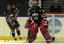 The 2005–06 season was UNO's most successful to date. The team used a ten-game unbeaten streak in January and February to finish 20–12–6 to earn their first ever berth in the NCAA Tournament. Parse set team records with 41 assists and 61 points and was UNO's first Hobey Baker Award finalist.[6] Following the season, Parse became the first Maverick selected as a first-team All-American and Conference Player of the Year.[24][25] Thomas scored a team-record 27 goals, combining with Parse to form the most potent first line in UNO history. The two helped the Mavericks to 141 goals, the most in the CCHA. The team struggled defensively after last year's goaltender Chris Holt signed with the New York Rangers in the offseason.[26] Walk-on freshman Jerad Kaufmann – the third-string goalie at the beginning of the season – eventually laid claim to the job. UNO's inexperience eventually got the best of the team, as they were dominated by Boston University in a 9–2 loss in the first round of the NCAA tournament. The Terriers broke open a 1–1 game with a six-goal second period to end UNO's first NCAA Tournament appearance.[27] Once again, the Mavericks could not build on their successes in the following seasons, as they finished in the middle of the pack each year in the conference. The squad finished two games over .500 in 2006–07, followed by finishing two games under .500 for the next two seasons.[6] In 2008–09, the team started out 12–4–3 – the best start in school history – before collapsing down the stretch and winning only three of their last 21 games.