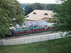 Virgie is the zoo's first diesel locomotive, acquired in 2008. It is a four-wheeled, 40-ton diesel switcher locomotive built by Plymouth, in 1957 and named for one of the railroad's founders. The engine, when arrived at the zoo, was painted light blue with red and black, and featured a likeness of a woman's face (presumably that of its previous owner's wife) on its front. The zoo repainted the engine to red and black with white trim, and removed the face.[1] Virgie entered service in 2009, mainly used as a train set switcher and is used for multiple different shop tasks.
