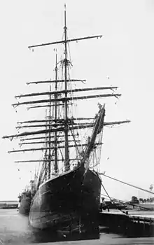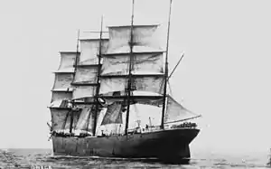 Omega (named Drumcliff until 1898) was a four-masted, steel-hulled barque built in Greenock, Scotland in 1887. In 1957 Omega became the last working cargo-carrying square-rigger afloat. She carried oil, guano, nitrate, wheat, and other goods. She sank in 1958, ending that age of sail.