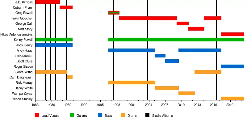 | Past members | Steve Whittig Kevin Goocher Coburn Pharr J.D. Kimball Greg Powell Glenn Malicki Scott Clute Jody Henry Cam Daigneault Rick Murray George Call Danny White Wampa Zayas Andy Haas |