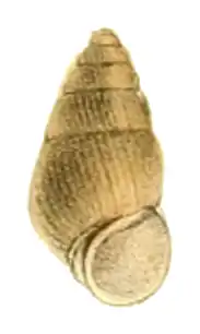 | Drawing by Arnould Locard of an apertural view of the shell of Omphalotropis costulata from its type description (Mousson 1870).[1] | |