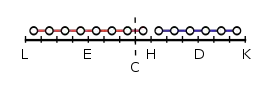 Now, since an even number of equal weights, equally spaced, have their centre of gravity between the two middle weights, A is in fact applied at E, and B at D, as the proposition requires. Further, the total system consists of an even number of equal weights equally distributed, and, therefore, following the same law, C must be the centre of gravity of the full system. Thus, the system does not incline but is in equilibrium.[1]