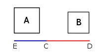Given two unequal, but commensurable, weights and a lever arm divided into two unequal, yet commensurable, portions (see sketch opposite), if the magnitudes A and B are applied at points E and D, respectively, the system will be in equilibrium if the weights are inversely proportional to the lengths: