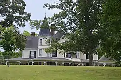 On the Hill is an historic house at 982 Jefferson Street in Boydton, Virginia. The oldest portions of the house were built as a farmhouse in the early 19th century. In the late 19th century the Finch family hired a prominent local contractor, Jacob Holt, to transform the house into an elaborate Queen Anne residence. It has a three-story turret, and a porch that extends across the whole width of the house. The porch is decorated with bracketed eaves, and the house's main gable is decorated with carved woodwork.[2]