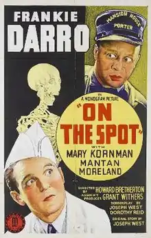 On the Spot is a 1940 American comedy film directed by Howard Bretherton and written by George Waggner and Dorothy Davenport. The film stars Frankie Darro, Mary Kornman, Mantan Moreland, John St. Polis, Robert Warwick and Maxine Leslie. The film was released on June 11, 1940, by Monogram Pictures.[1][2][3]