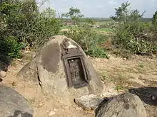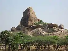 This hillock is located northeast of Onampakkam and is very near L. N. Puram village. Parshavanthar (Parshva) image facing east, is nicely carved on a small rock and was built like a small temple. An image of a five headed snake which is covering the head of Parshavanathar and yakshan & yakshi (yakshini) on the either side are also seen. On the right side, an inscription in grantha and Tamil characters is seen. This inscription states that Vasudeva Siddhantha Padarar, a Jain monk who governed the "Irupathi Irandu" (Tamil: இருபத்து இரண்டு) branch of Tamil Jains, had built this temple.[3] Rock carved images of Adhinathar (Adinath) and Mahaveerar (Mahavira) are also seen in two places at a few feet distance. These sculpture belongs to 8th Century AD.[4]