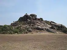 Ten stone beds are seen in two places on this hillock. One group of five stone beds are seen on the top of the hill. These beds are carved on a rock facing east. Above these beds, on a rock, a long narrow line were carved to protect the beds from water inflow. On the east of this hillock, another group of five stone beds are seen facing north. A dried pond is also seen on the hillock.