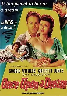 Once Upon a Dream is a 1949 British comedy romance film directed by Ralph Thomas in his debut and starring Googie Withers, Griffith Jones, and Guy Middleton.[1] It was a J. Arthur Rank presentation and a Sydney Box production, and was released through General Film Distributors Ltd. The film was made at the Lime Grove Studios with sets designed by the art director Cedric Dawe.
