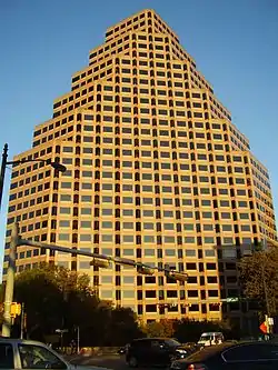One Eleven Congress, formerly One Congress Plaza, is a skyscraper in Downtown Austin, the state capital of Texas in the United States. Standing 397 feet (121 meters) tall and containing 30 floors, the building is the 17th tallest in Austin.[1] The building contains a sunken plaza, which include trees, a food hall, water features, and park benches, as well as the location for the AMOA Art Show.[2]