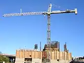 The remaining north tower was scheduled to begin construction after summer 2008 and be completed in 2009.[41] Originally, construction was supposed to commence in January 2008.[24][43][44] Later, the developer mentioned construction was going start in March, but the construction firm wasn't selected at that time. After March, the developer said construction was going to start in May 2008. However, following the worldwide financial crisis of the late summer and fall of 2008, the project's developers announced that construction of the second tower was indefinitely on hold. With improving economic conditions in the city, construction started on this tower in October 2012;[45] its first residents moved in August 2014.[8] The north tower was later renamed The Harrison.[46]