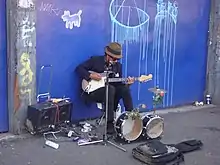 A one-man band is a musician who plays a number of instruments simultaneously using their hands, feet, limbs, and various mechanical or electronic contraptions. One-man bands also often sing while they perform.