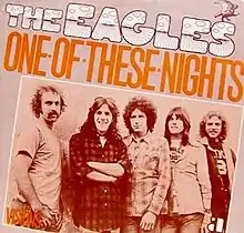 "One of These Nights" is a song written by Don Henley and Glenn Frey and recorded by the American rock band Eagles. The title track from their One of These Nights album, the song became their second single to top the Billboard Hot 100 chart after "Best of My Love" and also helped propel the album to number one. The single version was shortened from the album version of the song, removing most of the song's intro and most of its fade-out, as well. Henley is lead vocalist on the verses, while Randy Meisner sings high harmony on the refrain. The song features a guitar solo by Don Felder that is "composed of blues-based licks and sustained string bends using an unusually meaty distortion tone."[4]