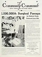 Oneida Limited successfully adapted to the difficult economic conditions of the First World War and Second World War. Throughout both of these world economic upheavals, Oneida adapted its manufacturing capabilities. During the First World War, it produced ammunition clips, lead-plated gas shells, combat knives, and surgical instruments; during World War II, the company added army trucks, aircraft survival kits, and even jet engine parts to its manufacturing repertoire.[7]