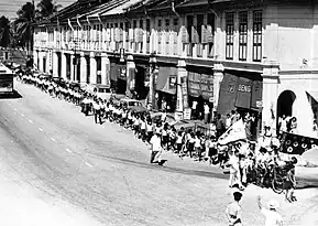 As Chairman of the Fundraising Committee, Ong solicited donations from the public and businesses in towns throughout Malaya and in Singapore to build new classrooms, teachers' room, and amenities and office administration block. A donation was made by the Haw Par Brothers, Aw Boon Haw and Aw Boon Par, in 1939 to build a school hall. Rev. T.C. Nga, noted that ". . . a substantial donation from Haw Par Brothers was solicited by Mr Ong Seok Kim, and a school hall was erected and named after the donors."[24] A couple of years after the school started, the Japanese occupied Malaya. During the Japanese Occupation, the school premises, facilities and compound were badly damaged. Immediately after the Japanese Occupation, Ong was re-elected Chairman of the School Board in 1946 and 1947; and Chairman of the Building and Fundraising Committee. The immediate task was to restore/rebuild its premises and its facilities and amenities. Rev.T.C. Nga noted: "The task was gigantic then. In the midst of the then prevailing chaotic situation, some community leaders led by Mr Ong Seok Kim visited Nan Hwa High School, with the purpose of reopening the institution for classes to resume as soon as possible. The re-organised Management Committee of Nan Hwa High School, Sitiawan, under the chairmanship of Mr Ong Seok Kim, . . . raised the needed funds to repair and renovate the existing premises and also to build additional classrooms to meet the fast growing student population after the War. By 1947, Junior Middle classes in both Arts and Sciences were conducted . . . In addition to conducting Junior Middle classes in both Science and Arts, the School . . . also conducted Simplified Teachers’ Training Course . . ."[25]