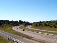 Though one of the first divided highways conceived for Ontario,[11] Highway 403 is one of the most recently completed freeways in the province; the multiple segments of the route did not become continuous until 2002.[12] Planning for the route was underway by 1958, with the completion of the Freeman Bypass along the QEW providing a three-legged junction for the new freeway.[13][14] Sections of Highway 403 through Hamilton opened between December 1963 and September 1969.[15] An isolated section known as the Brantford Bypass was opened in October 1966,[2] and would remain unconnected to other freeways for over 20 years.[16] Plans for a third segment through Mississauga were contemplated throughout the 1960s,[17][18] but were not finalized until late 1977, after which construction began.[19] Portions opened at both ends in 1980 and 1981,[20][21] while the central gap, crossing the Credit River, was completed in December 1982.[22]