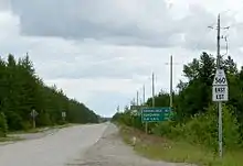 Highway 560 is a remote route through some of the most isolated parts of Northeastern Ontario, spanning 183.9 kilometres (114.3 mi) between Highway 144, where the road continues west as the Sultan Industrial Road, and Highway 11 at Englehart. There are few gas stations and services located along the route, which is heavily travelled by logging trucks; warning signs are posted along the route as a reminder of this hazard.[3][4]