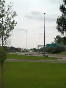 On November 30, 1990, the Northfield Drive interchange was fully opened to traffic, eliminating a traffic signal from the northern end of the Conestoga Parkway.[17] The speed limit on the parkway was lowered from 100 km/h (62 mph) to 90 km/h (56 mph) on January 10, 1994 following numerous cross-median collisions.[18] In 1998, during the mass downloading of provincial highways to lower levels of government, the majority of Highway 86, from the Northfield Drive interchange to Amberley, was decommissioned.[19] The Regional Municipality of Waterloo subsequently designated the section north from Waterloo to Elmira as Regional Road 85. Consequently, the remaining section of Highway 86, which exclusively followed the Conestoga Parkway, was renumbered as Highway 85 during the spring of 2003 to align the numbers and aid navigation.[20][21]