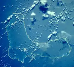 It is likely that first European sighting was by the Spanish expedition of Álvaro de Mendaña on 1 February 1568. It was charted by them as Bajos de la Candelaria (shoals of Our Lady of Candlemas in Spanish).[5][6] The following verifiable sighting by Europeans was by Abel Tasman in 1643 who named it Ontong Java; however, it wasn't until 1791 that Europeans set foot on the islands, when Capt. John Hunter (later Governor of New South Wales) named it Lord Howe Atoll. In 1893 the islands were annexed by Germany and ceded to Great Britain in 1899.