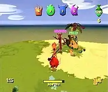 The storyline is that Ooga Booga is a volcano goddess that creates islands, and has leaders of tribes, the Kahunas, that battle for her favour.[3] It has a distinct Polynesian style and tone, and has many multiplayer islands and characters which can be unlocked. It was one of the last online games for the Dreamcast. There are four basic Kahunas that the player can use: Hottie (balanced), Fatty (strong), Twitchy (fast), and Hoodoo (spells).[4] There are other unlockable Kahunas based on the main four. Some of them include Death (a floating skeleton), Abe (former U.S. President Abraham Lincoln), Superguy (superhero), Joseph (a caveman who says "ooga booga") and Dwarf (a dwarf).