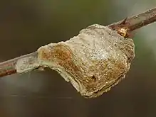 An ootheca /oʊ.əˈθiːkə/ (pl. oothecae /oʊ.əˈθiːsiː/) is a type of egg mass made by any member of a variety of species including mollusks (such as Turbinella laevigata), mantises, and cockroaches.[1][2][3]