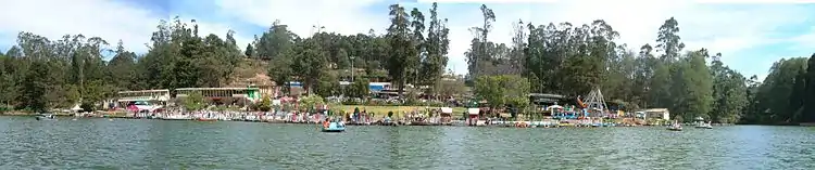 Ooty lake is an artificial lake near Ooty in the Nilgiris district of Tamil Nadu, India. It covers an area of 65 acres.[2] The boathouse on the lake is a major tourist attraction.