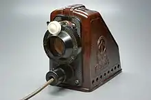 Swiss mathematician, physicist, astronomer, logician and engineer Leonhard Euler demonstrated an opaque projector around 1756. It could project a clear image of opaque images and (small) objects.[1] French scientist Jacques Charles is thought to have invented the similar "megascope" in 1780. He used it for his lectures.[2] Around 1872 Henry Morton used an opaque projector in demonstrations for huge audiences, for example in the Philadelphia Opera House which could seat 3500 people. His machine did not use a condenser or reflector, but used an oxyhydrogen lamp close to the object in order to project huge clear images.[3]