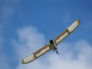 The OpenSky M-02/M-02j is a Japanese primary glider/jet-powered motor glider inspired by the Möwe aircraft flown by the protagonist in the Hayao Miyazaki anime Nausicaä of the Valley of the Wind.[1] It is a tail-less design intended to be powered on take off and climb for a duration of 10 minutes, then flown unpowered as a glider. As of June 2006, two aircraft prototypes have been constructed, and one has successfully completed a series of 10 unpowered test flights where it flew 98 meters and achieved an altitude of 4 meters after being tow-launched by a tensed elastic cable.[2][3] The project is led by artist Kazuhiko Hachiya and design by Satoru Shinohe and manufactured by Aircraft Olympos. The Jet engine installed version, M-02J, had public demonstration flight in June 2016 at Takikawa, Hokkaido.[4]