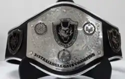 The Open the Triangle Gate Championship is a professional wrestling trios title in Japanese promotion Dragon Gate. It was created on November 7, 2004 when The Italian Connection faction of Milano Collection A.T., Anthony W. Mori and Yossino defeated Aagan Iisou's Shuji Kondo, Takuya Sugawara and "brother" Yasshi in a tournament final.[1] Each title belt's face has three emblems on it, shaped in a triangle, that represent Power, Technique and Mind.[2]
