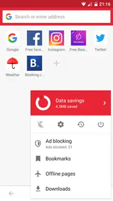 ![]() Screenshot of Opera Mini on Android | |||||||||||||