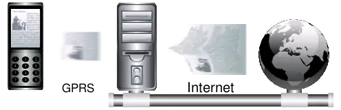 When a user browses the web using Opera Mini, the request is sent, via the connectivity available at that moment by the device (Mobile broadband, Wi-Fi or any other option given by the device) to access the Internet, to one of the Opera Software company's proxy servers, which retrieves the web page, processes and compresses it, and sends it back to the client (user's mobile phone).