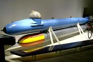 On D-Day, 6 June 1944, Allied troops landed in Normandy on the north coast of France in Operation Overlord and began the liberation of France.[2] On D-Day, Allied aircraft laid a smoke screen off Le Havre to blind the coastal artillery; a torpedo-boat flotilla and a flotilla of patrol ships sailed from the port, using the smoke for camouflage. The German boats managed to fire 15 torpedoes off the Orne at 05:30, hit and sink HNoMS Svenner and forced several other ships to take evasive action.[3][4][lower-alpha 1] On 6 July, Allied ships reported an "unusual object" passing through the Trout line, the eastern flank of the invasion area. The object was fired on, launched a torpedo and sailed away. Several more objects appeared soon after, well dispersed and were also fired on. The devices managed to sink two minesweepers for a loss of nine sunk and fifteen losses from all causes of the 26 that had sailed from Le Havre; it was later found that they were Neger midget submarines of the K-Verband (Small Battle Units).[6][7] On the night of 7/8 July, 21 Neger left Le Havre and all were sunk, most of their operators being killed, for one British minesweeper sunk and the Polish cruiser ORP Dragon damaged and scuttled off Sword Beach.[6][7]
